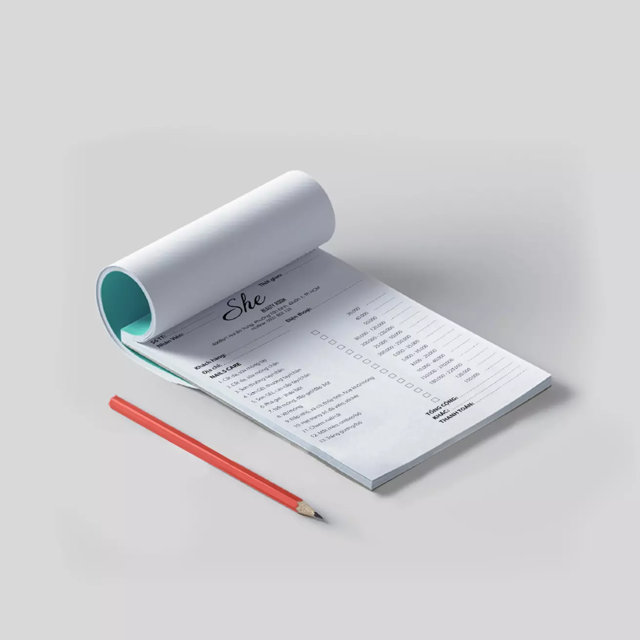 – Đóng cuốn biểu mẫu : đóng kim đầu, dán băng keo bìa