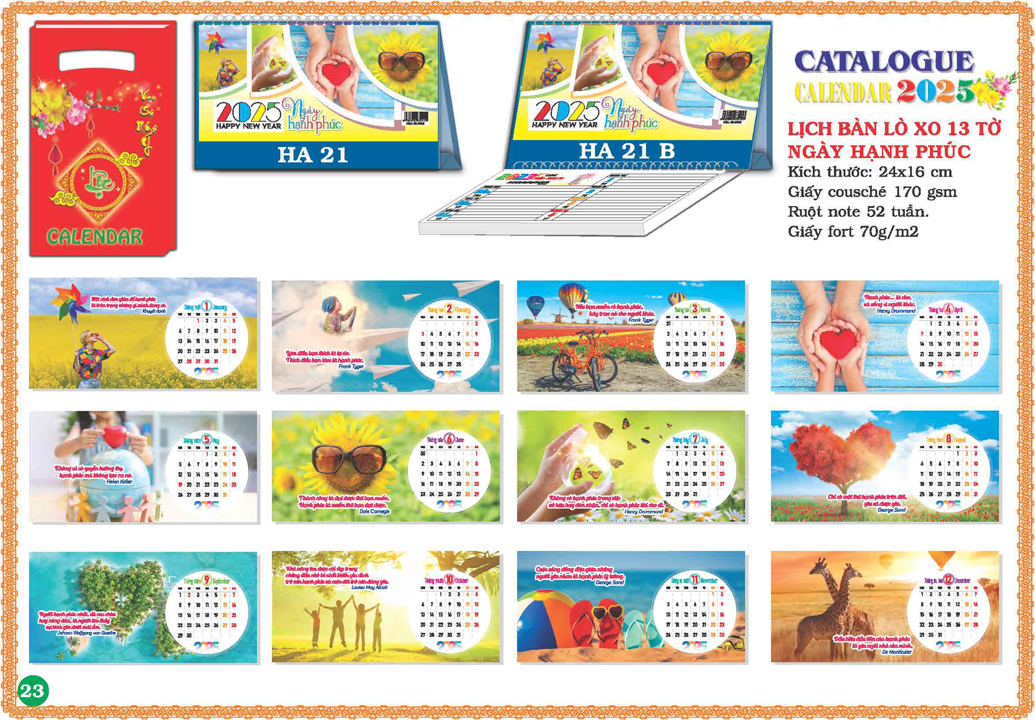 Giấy in lịch: Couche 200gsm – Couche 250gsm – Couche 300gsm hoặc Fort 220gsm