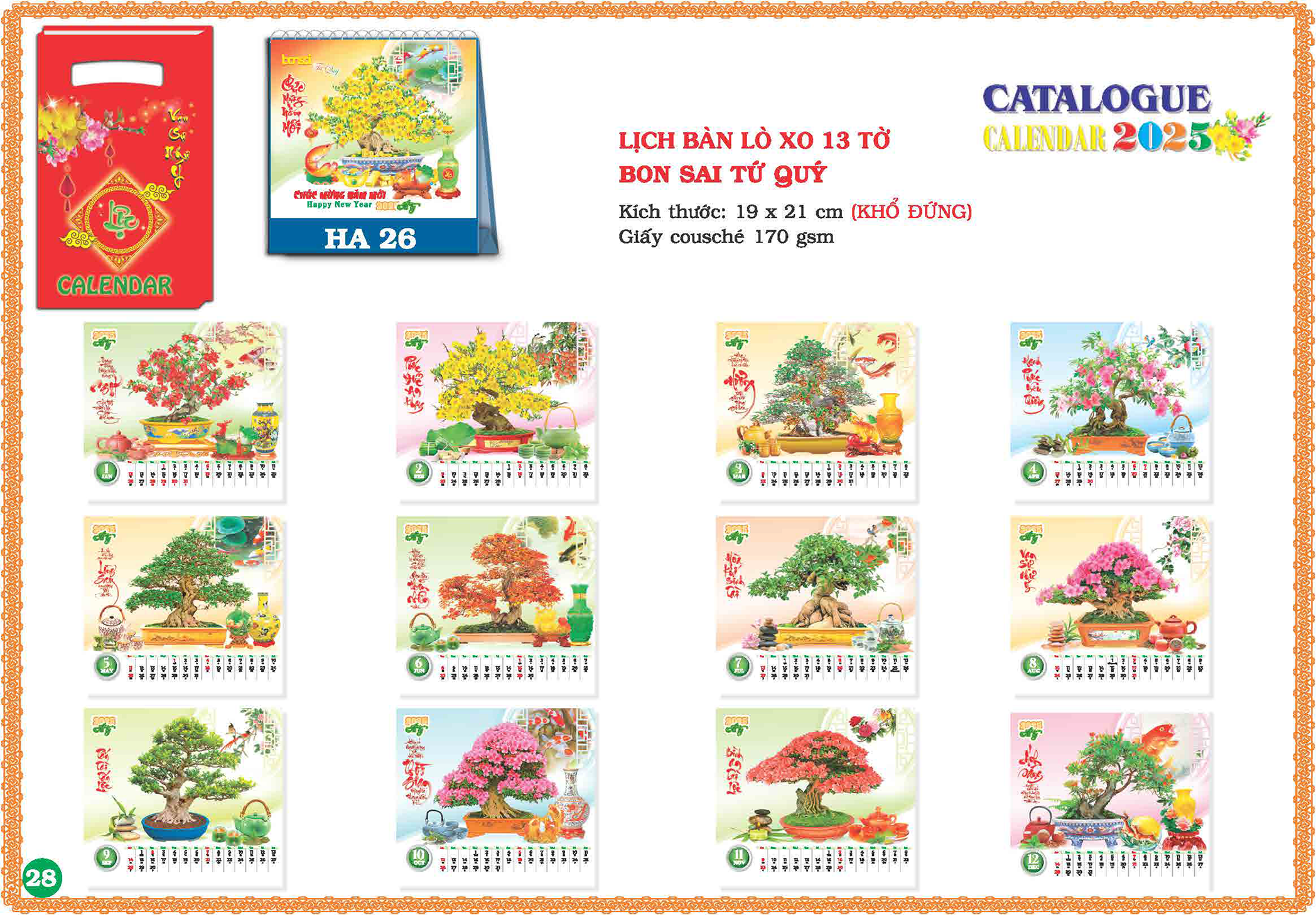 Giấy in lịch: Couche 200gsm – Couche 250gsm – Couche 300gsm hoặc Fort 220gsm